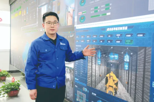 2021年,马兰矿将首个智能化掘进工作面的建设重任交给了掘进五队,面对全国首台八臂智能化掘锚一体机,大家无从下手。为了尽快熟悉设备,发挥最大效能,那段时间,李海涛带领大学生青年突击队没日没夜坚守井下。